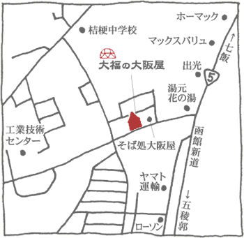 甘味処 大福の大阪屋 041-0801 北海道函館市桔梗町418-486 tel/ 0138-76-8506 営業時間/ 11:30-16:00 (売り切れ次第終了) 定休日/毎週水曜日・木曜日・日曜日(不定休あり) ※ご予約は一週間前までにお願いします。 |